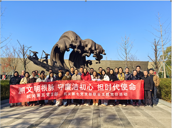 12月4日上午,秋高气爽,阳光明媚。机关第五、第七党支部联合组织党员开展“溯源跨湖桥文明 筑牢党员担当魂”主题党日活动。校党委委员、副校长赵浪平带队参观跨湖桥遗址博物馆。深入学习贯彻习近平总书记关于弘扬中华优秀传统文化的重要指示精神,扎实推进党纪学习教育,强化党员廉洁意识,进一步增强党员文化自信、筑牢廉洁防线、坚守初心使命。